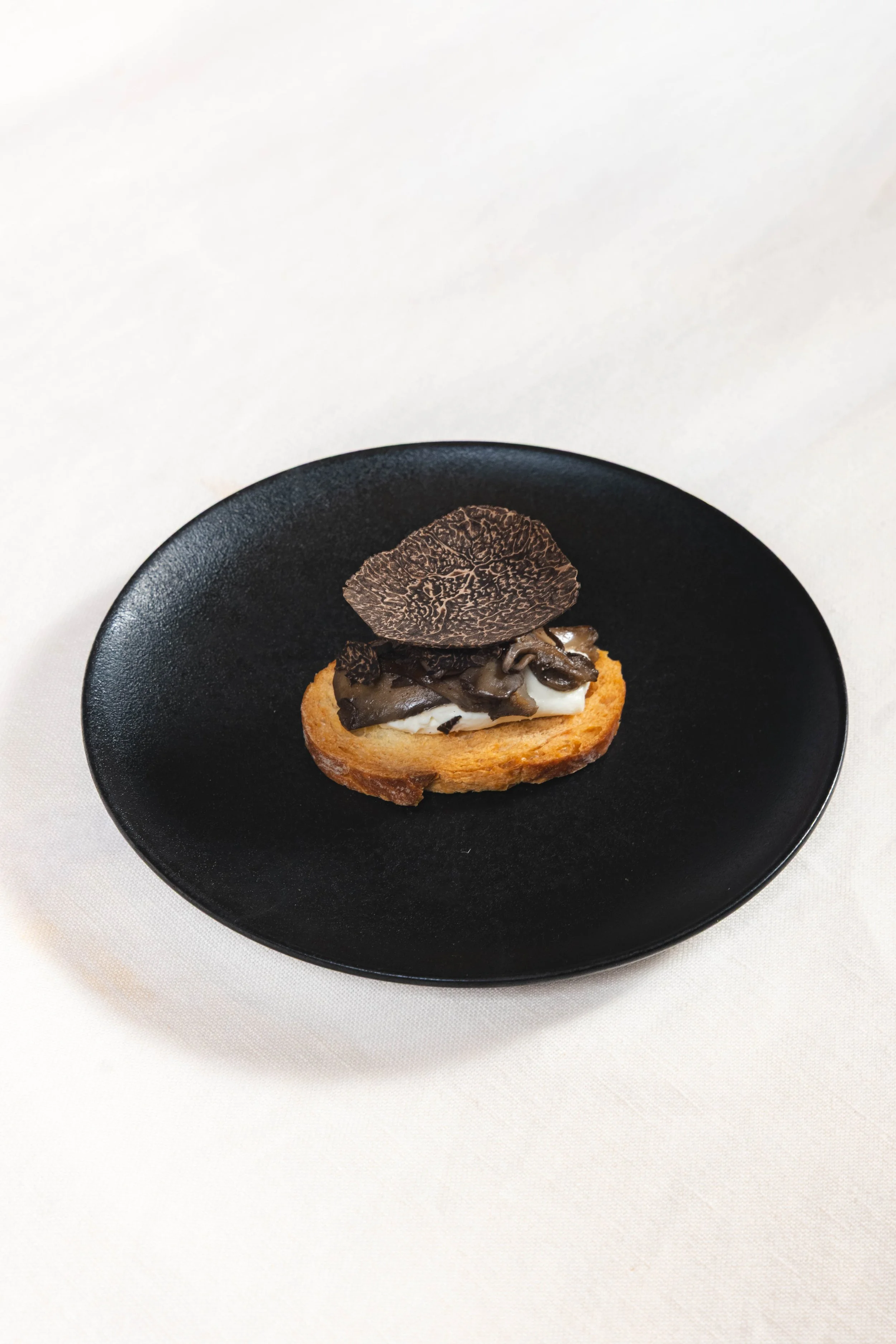 shaved black truffles, thyme, crostini