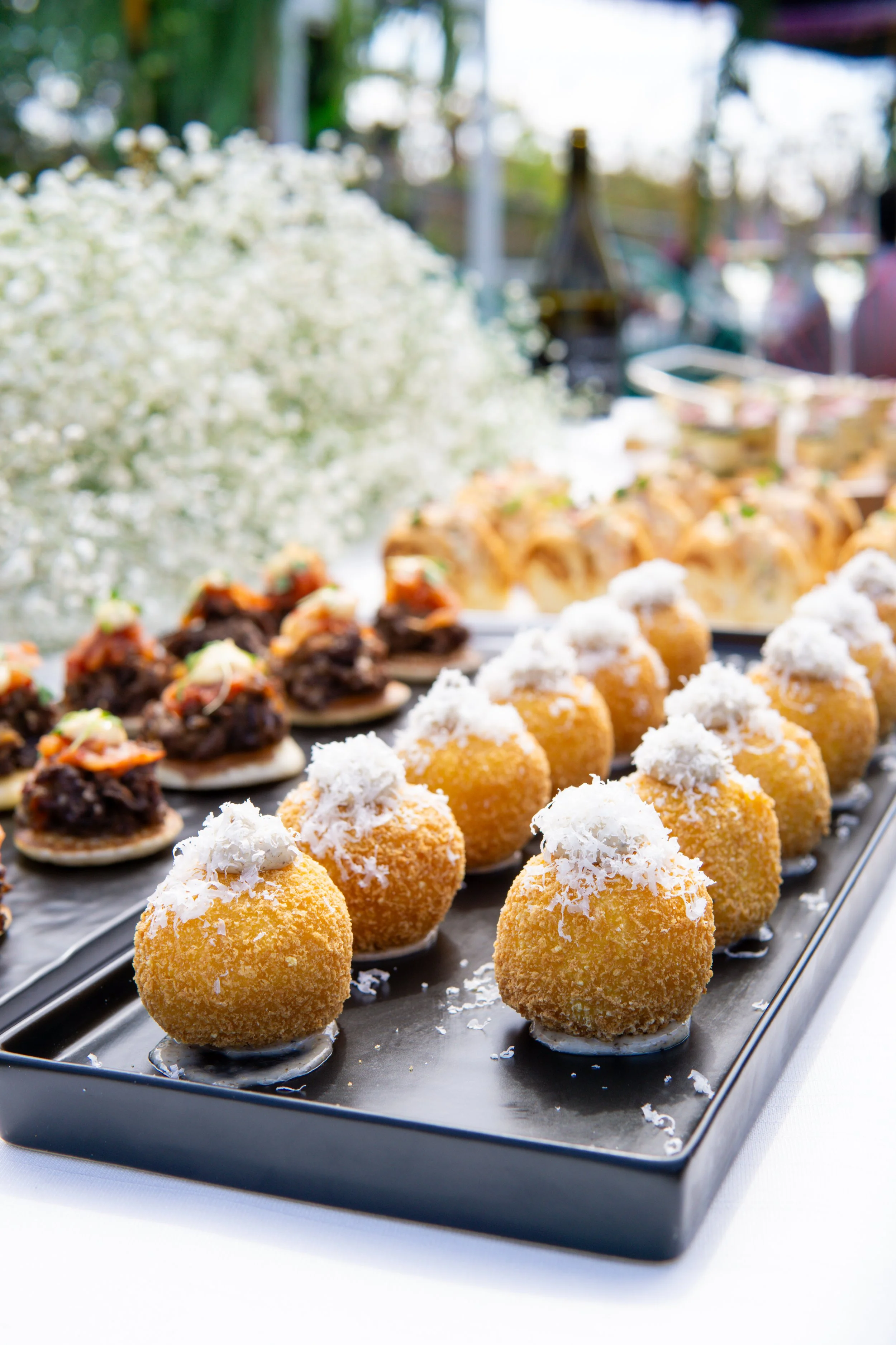 Small bites, designed to move, passed, shared, and easy to eat standing.