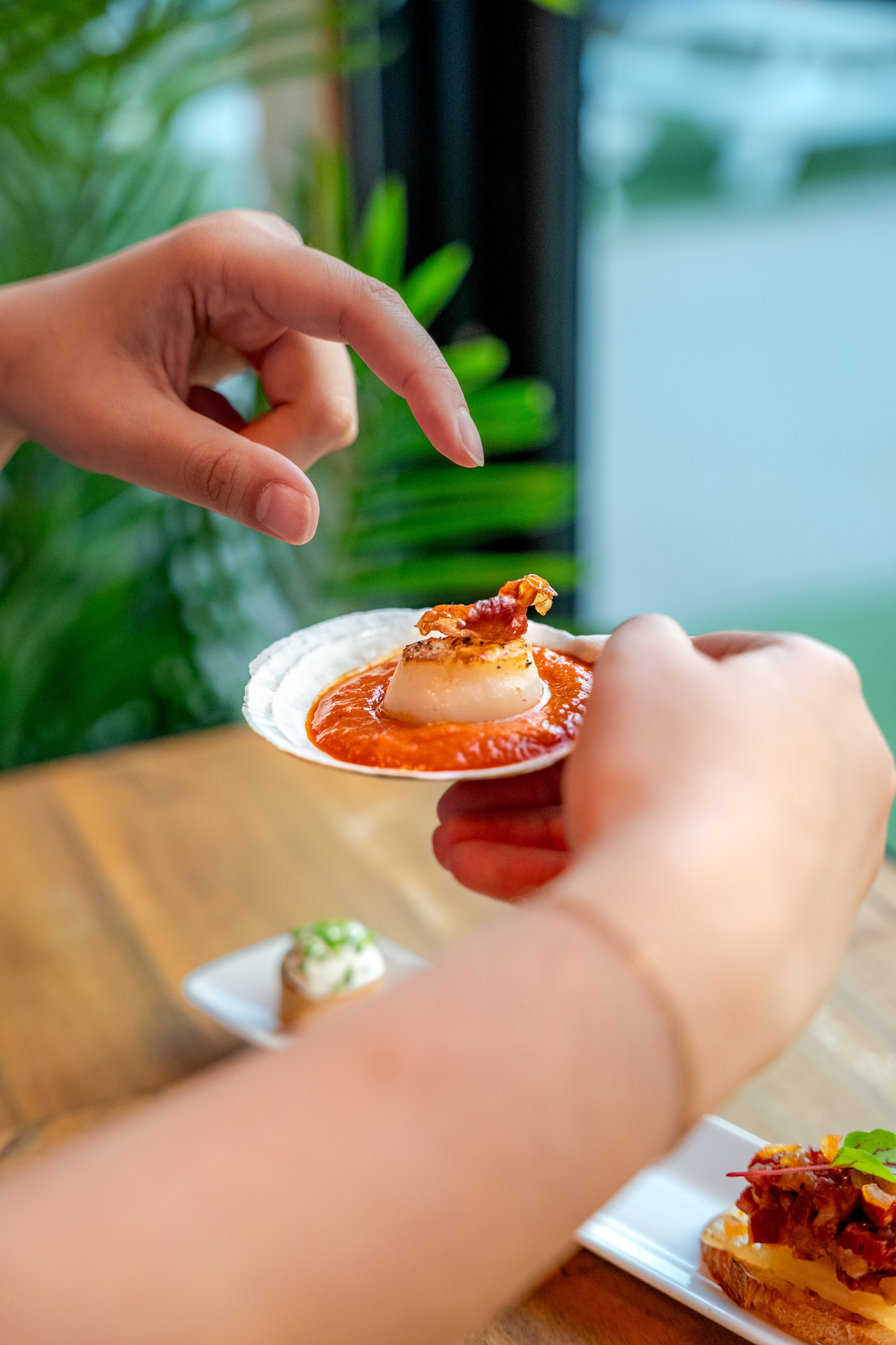 Seared scallop, smoked romesco, ibérico crisp