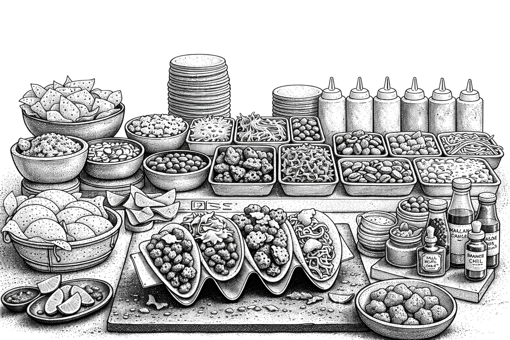 A taco bar that leans playful - heat, crunch, sauce, repeat.